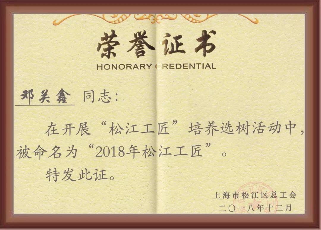 【熱烈祝賀】鄧關(guān)鑫榮獲首屆“松江工匠”榮譽(yù)稱號