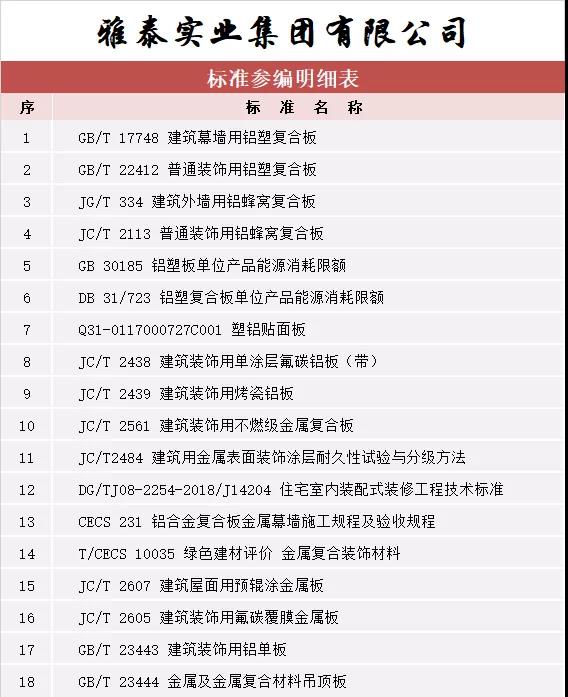 截至目前,雅泰作為參編單位參與國家標(biāo)準(zhǔn)、行業(yè)標(biāo)準(zhǔn)等各項(xiàng)標(biāo)準(zhǔn)共計 18 項(xiàng)(詳見參編標(biāo)準(zhǔn)一覽表),逐漸成為行業(yè)推進(jìn)標(biāo)準(zhǔn)化工作的主力軍之一,不斷證明公司地位及整體生產(chǎn)水品、產(chǎn)品實(shí)力等已得到業(yè)內(nèi)認(rèn)可。